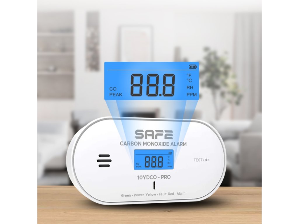 Multifunkčný digitálny detektor CO SAFE 10YDCO – PRO s podsvieteným LCD displejom