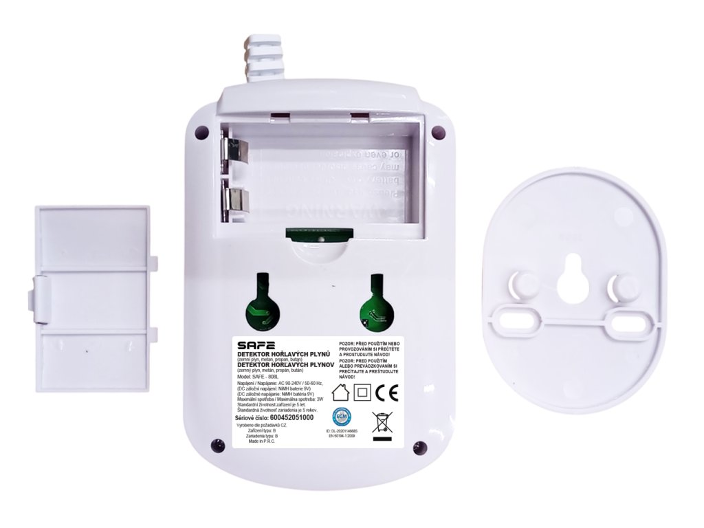 Polovodičové senzory katalytického spaľovania na detekciu horľavých a výbušných plynov vyžadujú konštantné napájanie z elektrickej siete. Detektor SAFE 808L je napájaný zo siete 230 V / AC, no na rozdiel od väčšiny konvenčných hlásičov disponuje integrovaným rýchlonabíjacím meničom a zásobníkom na umiestnenie záložnej batérie 9 V NiMH (štandardne batéria nie je súčasťou balenia), ktorá poskytuje maximálnu ochranu po určitý interval v prípade výpadku elektrickej siete.