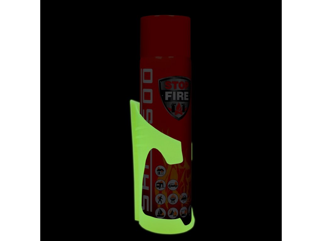 Držiak SAFE 50F je určený pre hasiaci sprej SAFE 500. Špeciálne konštruované držiaky sú určené na ich bezpečné a pohodlné upevnenie v dome, vozidle, na lodi, v kancelárii atď. Držiaky sú vyrobené z plastu a sú fluorescenčné, v tme jemne svietia.