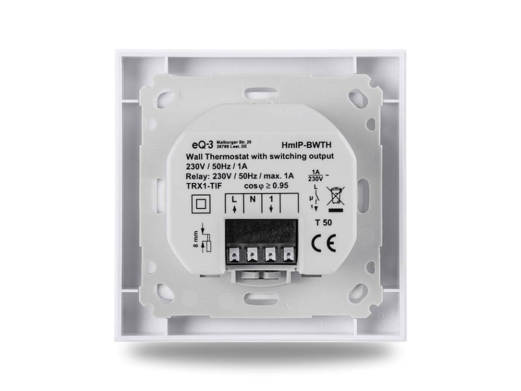 Homematic IP Wired – HmIP-BWTH – nástenný termostat so snímačom vlhkosti a spínacím výstupom 230 V – zapustená montáž