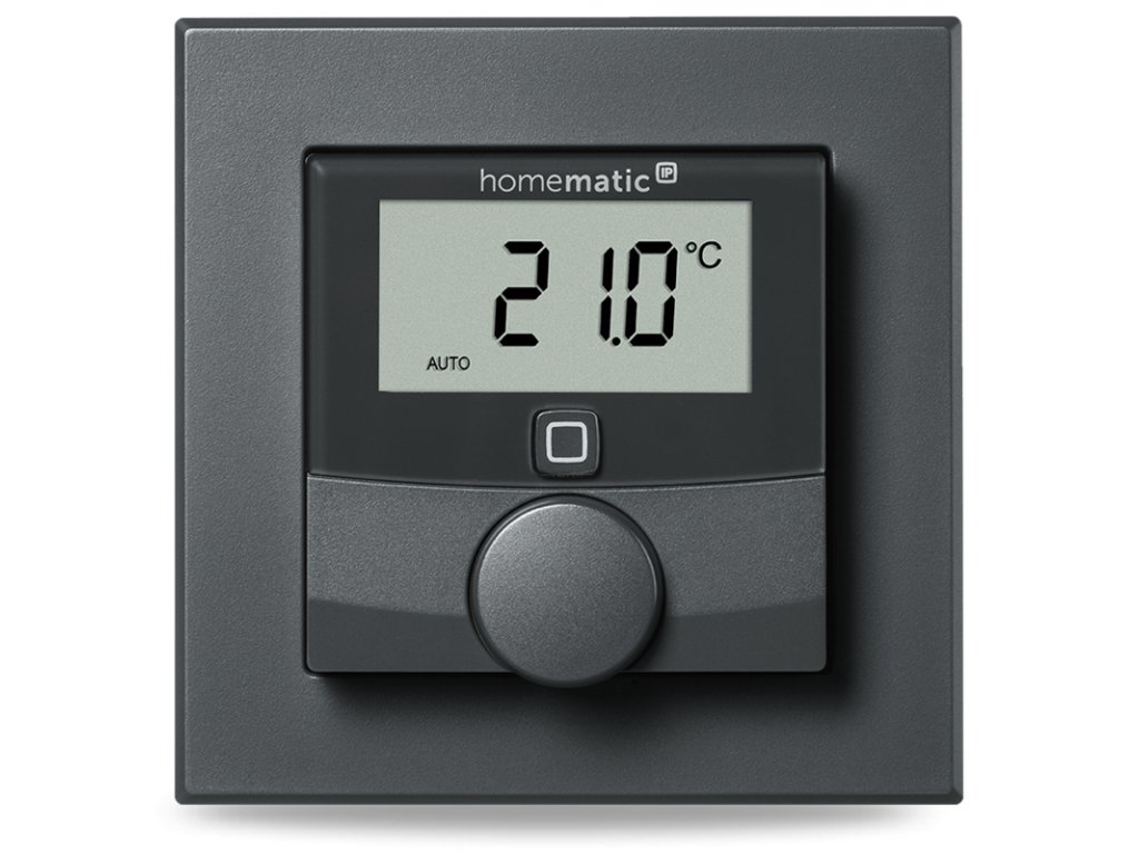 Jedným z takýchto zariadení je aj bezdrôtový nástenný termostat so snímačom vlhkosti a spínacím výstupom 230 V (HmIP-BWTH) z radu Homematic IP pre zapustenú montáž. Disponuje podsvieteným LED displejom o veľkosti 1,74" na zobrazenie aktuálnej teploty a vlhkosti a predstavuje inteligentný spôsob regulácie vykurovania a úspory energie.
