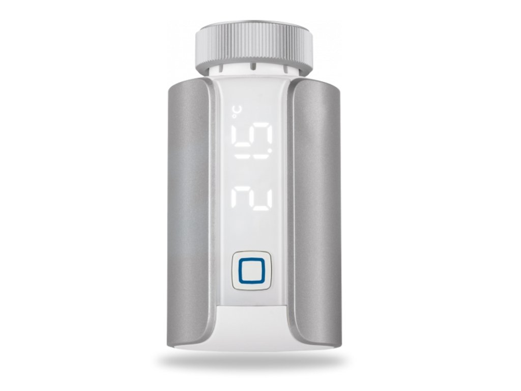 Hlavica Evo nepochybne zaujme aj svojim nenápadným integrovaným **LED displejom**, na ktorom je možné ľahko čítať výslednú teplotu a prevádzkové režimy. Bezdrôtová programovateľná termostatická hlavica strieborná Evo (HmIP-eTRV-E-S) s podsvieteným LED displejom predstavuje evolúciu pre reguláciu vykurovania a úsporu energií. Zmenu teploty je možné meniť manuálne, riadiť prostredníctvom niektorého z nástenných termostatov Homematic IP alebo vzdialene ovládať a automatizovať za pomoci mobilnej aplikácie Homematic IP v kombinácii s **Centrálnou jednotkou (HmIP-HAP)**.