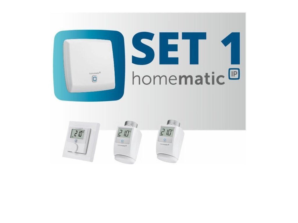 Štartovacia sada pre riadenie vykurovania HmIP-SET1 určená pre počiatočnú integráciu inteligentnej domácnosti Homematic IP. Sada obsahuje štyri základné zariadenia pre spoľahlivé riešenie regulácie vykurovania podľa individuálnych potrieb, čo vedie k okamžitej úspore a zníženiu výdavkov na energie až o 30 %. Sada obsahuje Centrálnu jednotku HmIP-HAP, 2x Termostatickú hlavicu HmIP-eTRV-2, Nástenný termostat so senzorom teploty a vlhkosti HmIP-WTH-1 a bezplatnú mobilnú aplikáciu v CZ lokalizácii dostupnú pre operačný systém Android a iOS.
