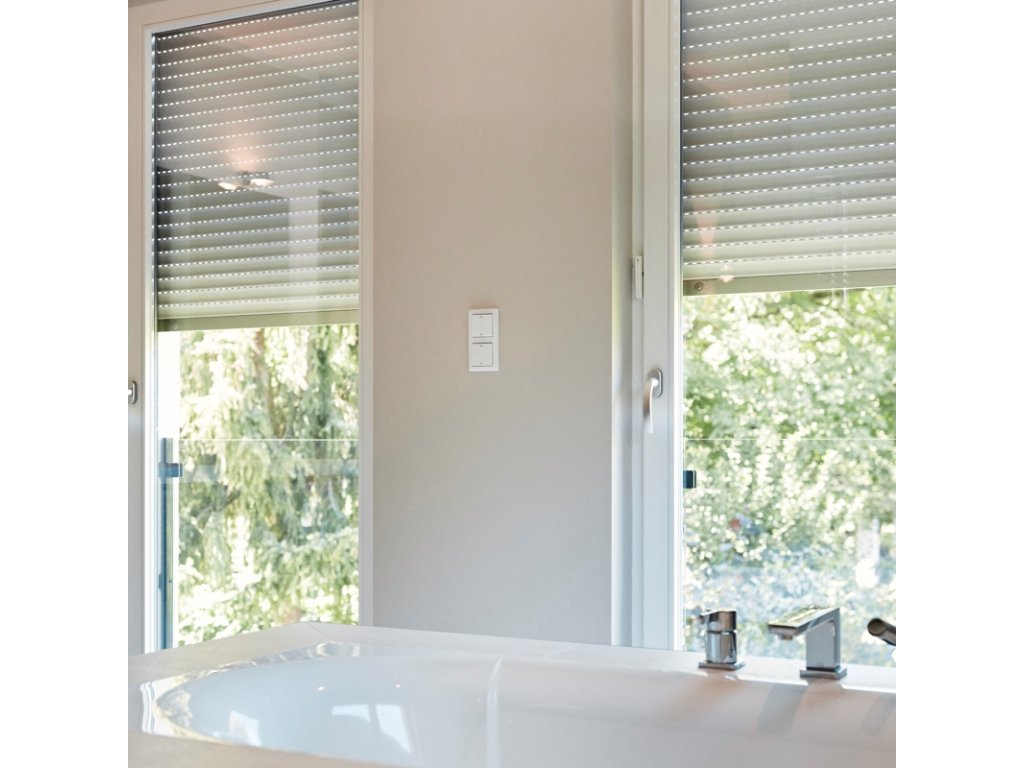 - Sada obsahuje centrálny modul, 2 akčné členy a 2 kryty na ovládanie tienidiel.
