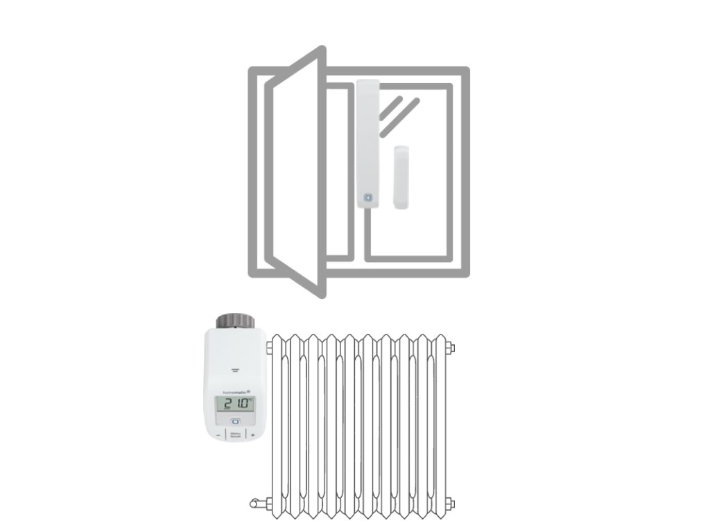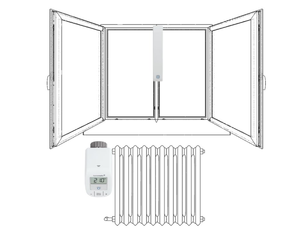 V režime regulácie vykurovania je magnetický senzor HmIP-SWDM aktivovaný pri otvorení okna alebo dverí. Systém môže automaticky prerušiť vykurovanie, čím sa zabezpečí úspora energie a optimálny komfort.