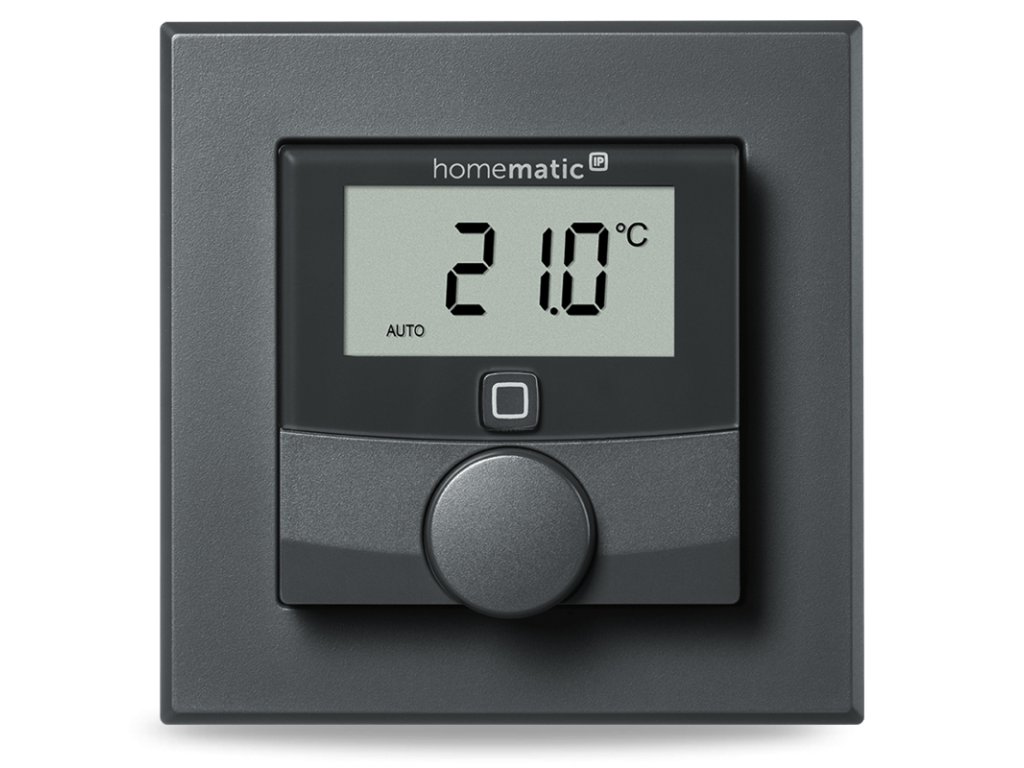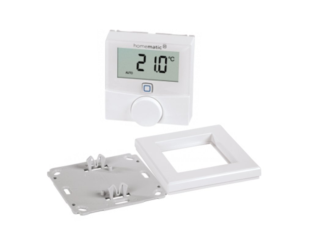 Programovateľný termostat so snímačom vlhkosti je súčasťou systému Homematic IP, umožňuje časovo riadenú reguláciu teploty a ovládanie viacerých termostatických hlavíc (HmIP-eTRV) v jednej miestnosti. Zariadenie môže pracovať autonómne, priamo prepojené s akčnými členmi podlahového vykurovania (HmIP-FAL).