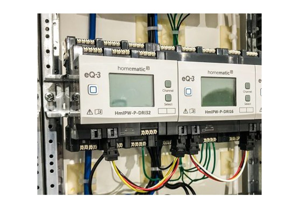 Pri systéme Homematic IP Wired je kladený dôraz na zariadenia, ktoré sú väčšinou inštalované v hlavnom rozvádzači. Spotrebiče sú ovládané centrálne pomocou spínačov, stmievačov a žalúziových a roletových akčných členov Homematic IP Wired. Zariadenia Homematic IP Wired sú vzájomne prepojené zbernicovým vedením.