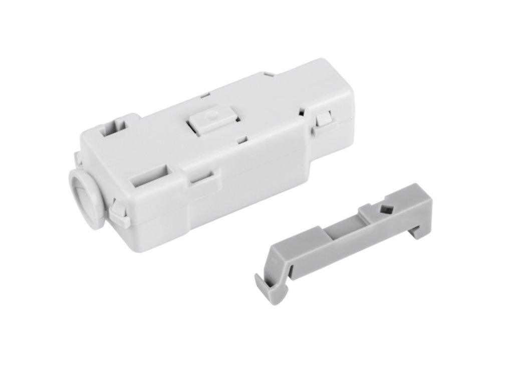 Je možné ho namontovať na montážnu lištu bez použitia náradia pomocou adaptéra Wago pre montážnu lištu (Wago č. výr. 209-137). Disponuje štyrmi označenými koncovkami pre vodiče od 0,2 do 1,5 mm2. |