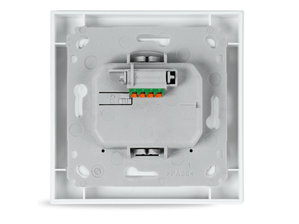 Dodávaná montážna doska je optimalizovaná pre inštaláciu do podomietkovej krabice. Odnímateľná svorka push-in uľahčuje pripojenie k zbernici.