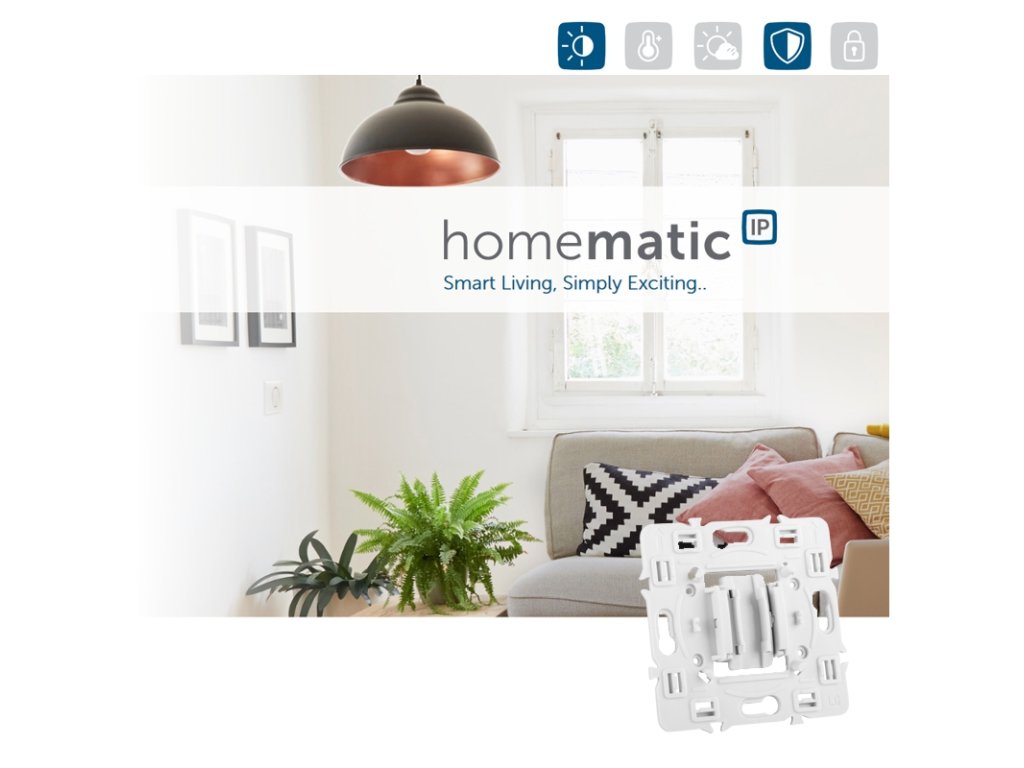 Adaptér umožňuje integrovať rámčeky a kryty modelovej rady Céliane alebo Mosaic od spoločnosti Legrand. Adaptér sa integruje k spínaciemu akčnému členu HmIP-BSM-I.
