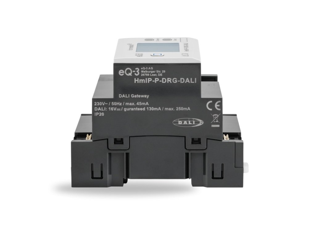 Brána DALI (HmIP-P-DRG-DALI) sa montuje na štandardnú DIN lištu s pripojením do siete 230 V. DALI zariadenia sa pripájajú k dvojvodičovému digitálnemu komunikačnému rozhraniu DALI. Každé zo zariadení DALI má svoj unikátny identifikátor, vďaka ktorému ho je možné v zbernicovom zapojení ľahko a rýchlo rozpoznať, nezávisle nastaviť a ovládať.