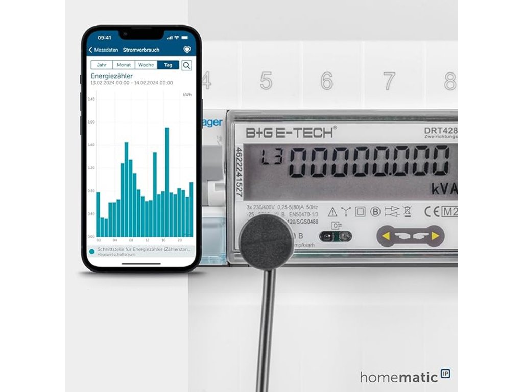 Rozhraní je vhodné pro průběhové nebo podružné elektroměry, které zaznamenávají příkon fotovoltaického systému nebo spotřebu energie z tepelného čerpadla. Údaje se vždy zobrazují v aplikaci Homematic IP. Instalace probíhá v několika málo krocích přímo na elektroměru. Informaci o tom, kolik impulsů na kWh váš elektroměr dodává, najdete přímo na elektroměru.