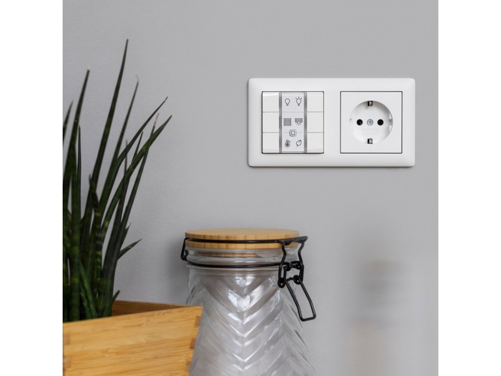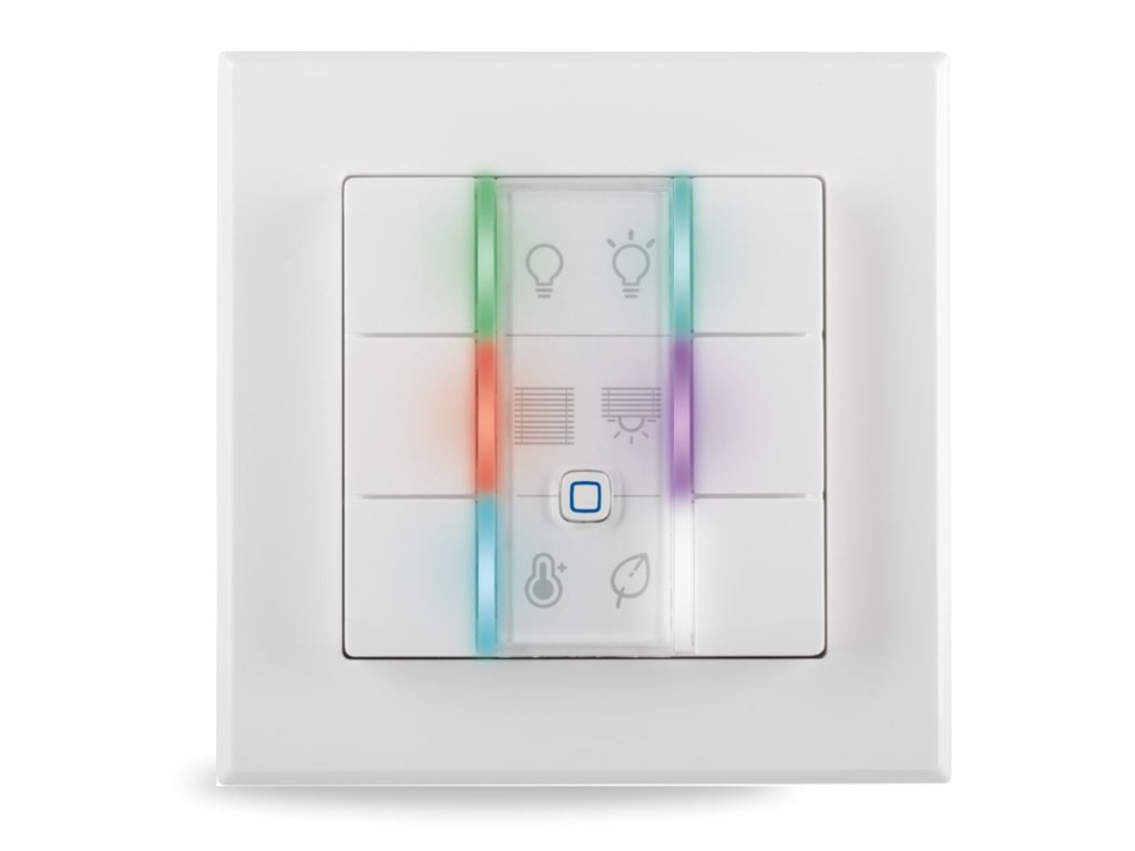 Flexibilný nástenný drôtový ovládač ponúka vhodné riešenie pre každú aplikáciu v inteligentnej domácnosti. Stlačením tlačidla je možné spustiť jednu alebo viac funkcií súčasne. Pomocou integrovaných viacfarebných LED diód je možné taktiež zobrazovať rôzne stavy v inteligentnej domácnosti.