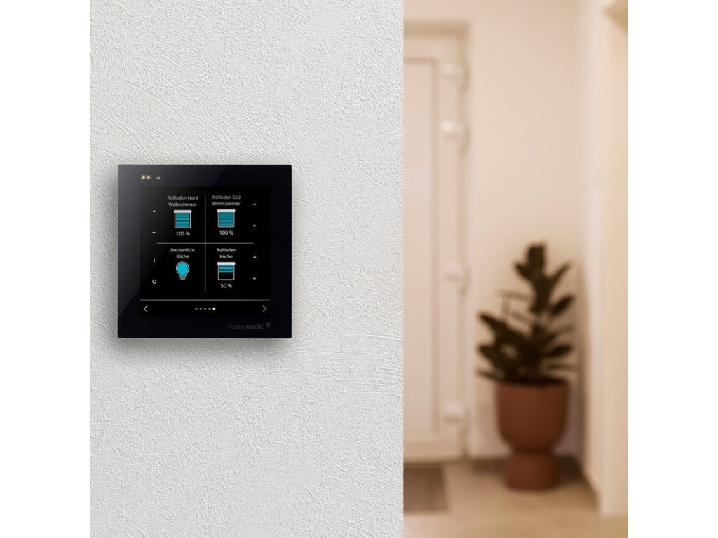 Optimálne osvetlenie miestnosti jediným dotykom. Pomocou drôtového skleneného displeja Homematic IP Wired je možné svetlá zapínať a vypínať alebo stmievať. Ovládajte svetlá, žalúzie a rolety v celej domácnosti centrálne z jedného miesta.