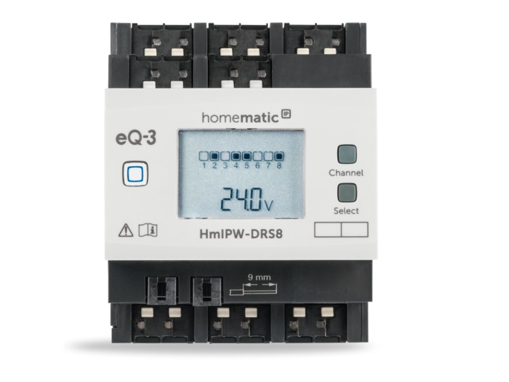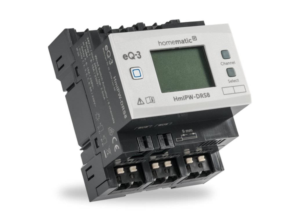 Homematic IP Drôtový spínací akčný člen s LCD - až 80 A, na DIN lištu, 8 kanálov - HmIPW-DRS8
