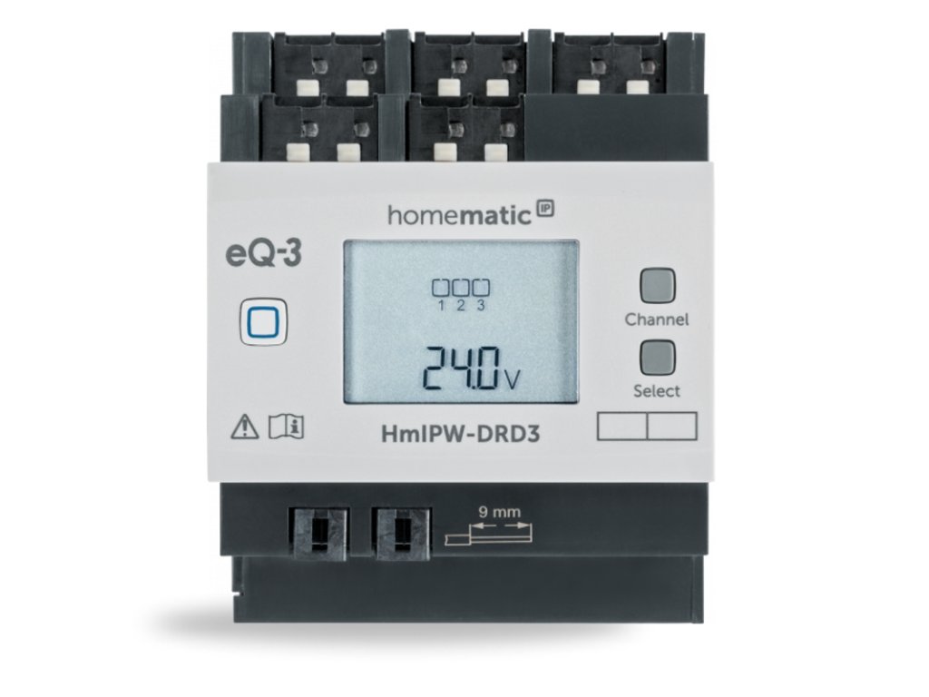 Homematic IP Wired - HmIPW-DRD3 - drôtový stmievací akčný člen s LCD – na DIN lištu, 3 kanály