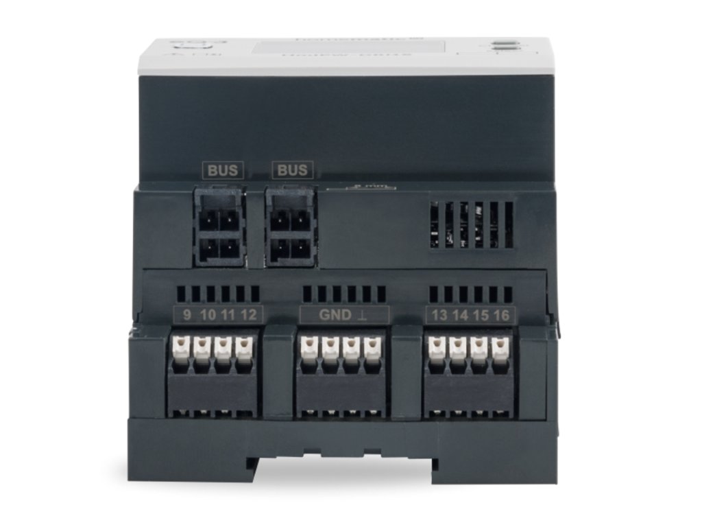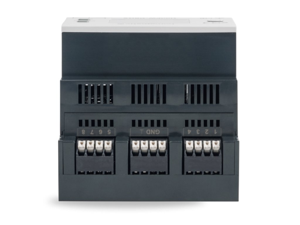 Jednoduchá montáž na štandardné DIN lišty v domových a čiastkových distribučných rozvádzačoch. Obzvlášť jednoduchá a bezskrutková montáž vďaka pružinovým svorkám a zásuvným konektorom pre zbernicové pripojenie. Každý kanál je možné nastaviť na inú fázu, čo umožňuje nezávislé ovládanie každého jednotlivého kanála. Pohodlné uvedenie do prevádzky a ovládanie priamo na zariadení vďaka veľkému podsvietenému LC displeju.