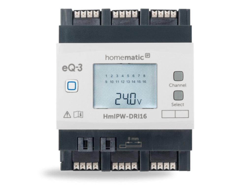 Homematic IP Drôtový vstupný modul s LCD - na DIN lištu, 16 kanálov - HmIPW-DRI16