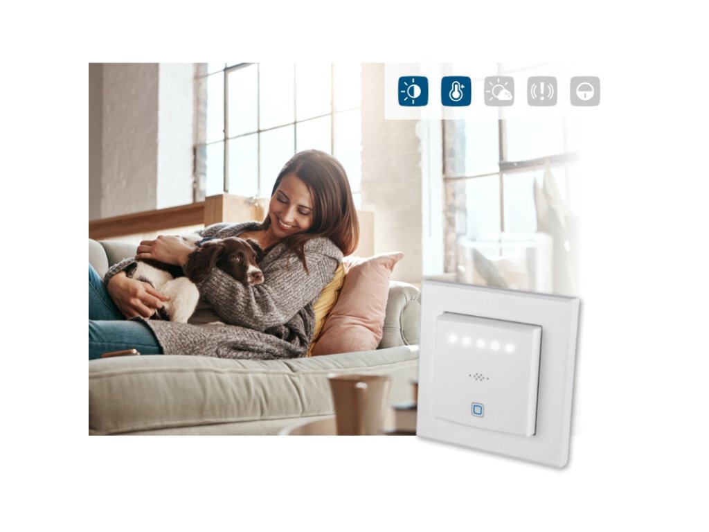 Bezdrôtový kombinovaný senzor CO2 na zapustenú montáž so spínaným výstupom 230 V, určený pre vnútorné použitie. Monitoruje kvalitu ovzdušia, teplotu a vlhkosť v miestnosti. Hodnota CO2 je signalizovaná LED diódami.