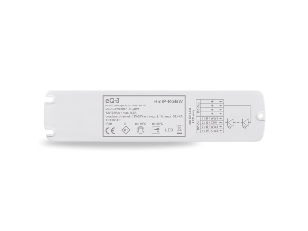 Robustné vyhotovenie robí RGBW LED kontrolér (HmIP-RGBW) ideálnym pre skrytú montáž do dutých priečok alebo stropných podhľadov. Pre možnosť upevnenia sú k dispozícii montážne otvory. Kontrolér možno napájať 12-24 V DC. Bezdrôtová komunikácia ponúka možnosť inštalácie bez potreby sekundárnej kabeláže. To znamená, že kontrolér možno umiestniť v mieste pripraveného alebo existujúceho elektrického rozvodu.