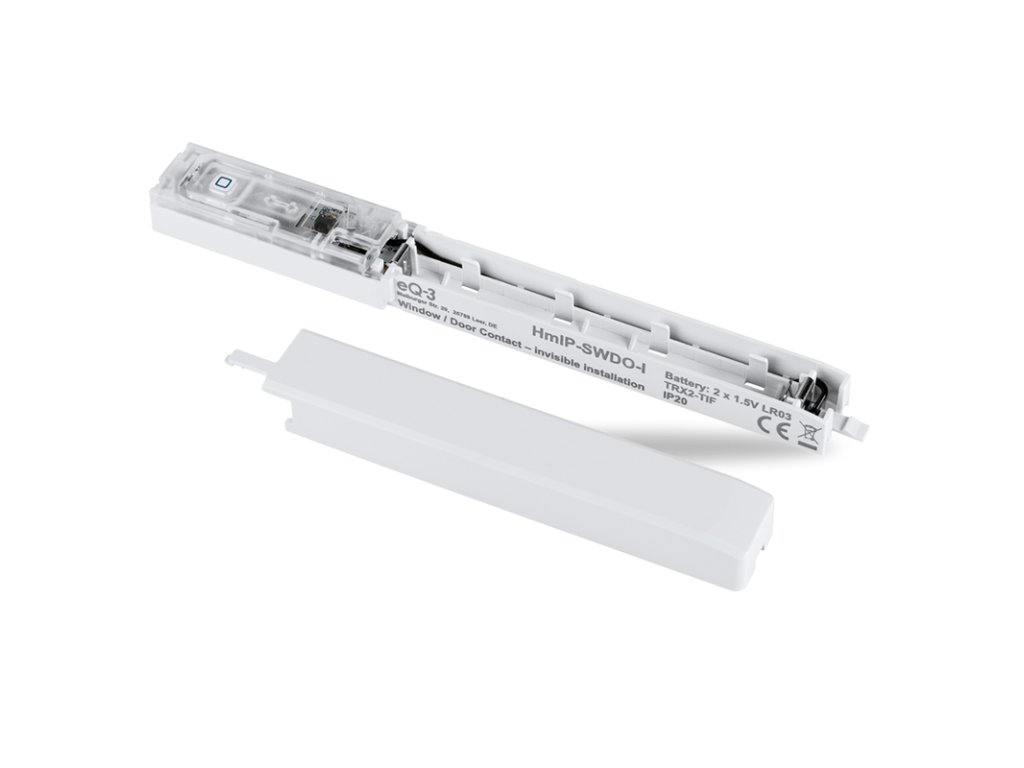 Plochý optický snímač (HmIP-SWDO-I) je určený na skrytú montáž do rámu okna alebo dverí pomocou dodávaných lepiacich pások. Pri zatvorenom okne alebo dverách nie je viditeľný.