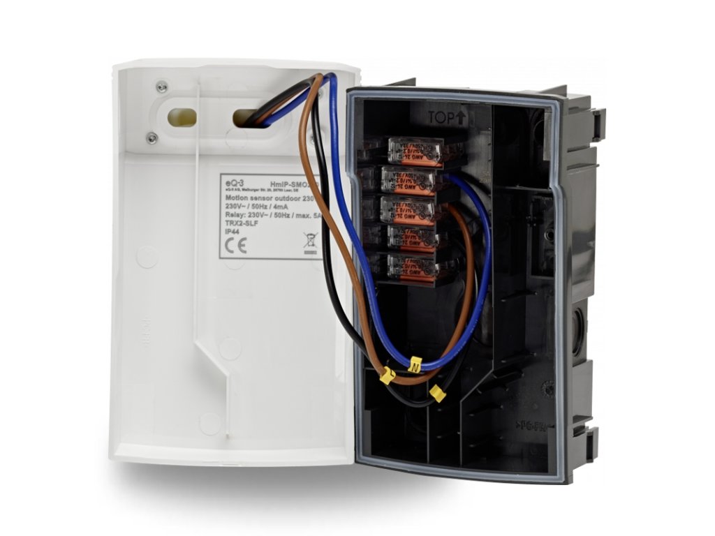 - 1× vonkajší PIR detektor pohybu so spínacím akčným členom Homematic IP