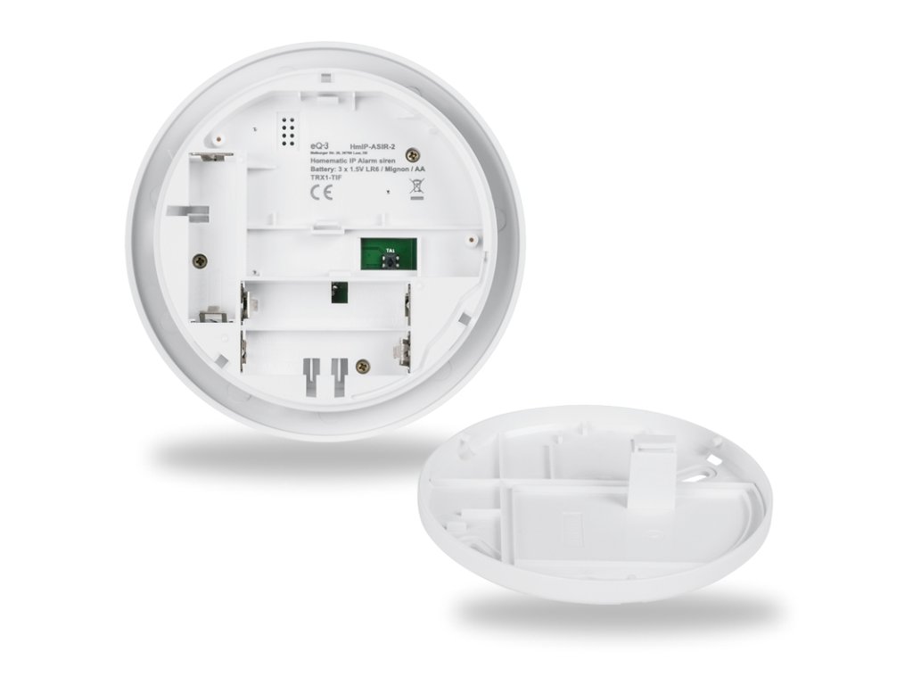Bezdrôtová poplachová siréna (HmIP-ASIR-2) na vnútorné použitie je súčasťou systému inteligentnej domácnosti Homematic IP. Siréna má výkonný akustický generátor s intenzitou 90 dB a dve vysoko svietivé červené LED diódy.