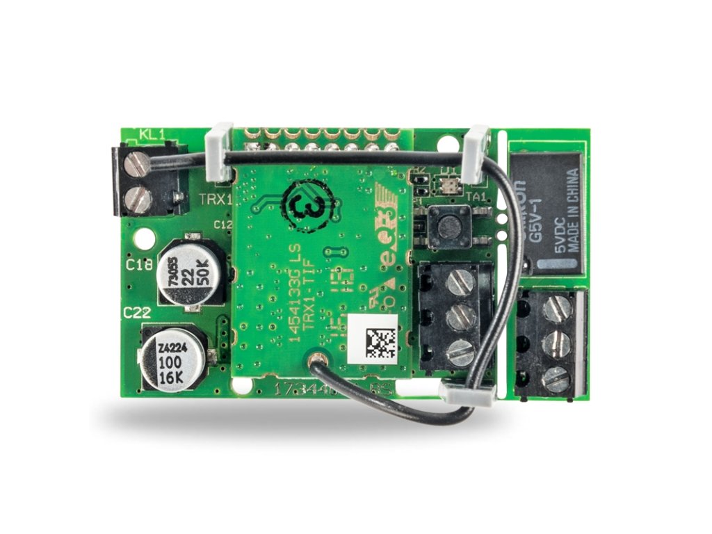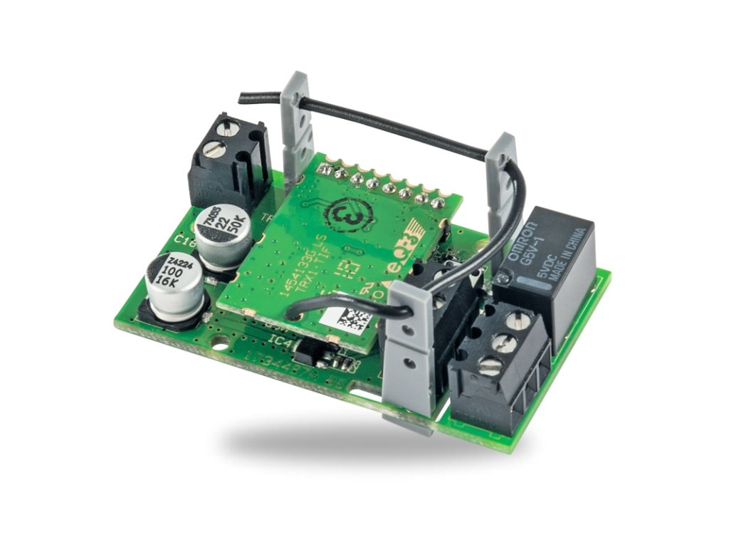 Programovateľný bezdrôtový Spínací akčný člen (HmIP-PCBS) v modulovom vyhotovení pre improvizovanú montáž, napájaný zo zdroja jednosmerného napätia v rozsahu 5 až 25 V, ľahko integruje bežné elektrické spotrebiče do systému inteligentnej domácnosti Homematic IP.