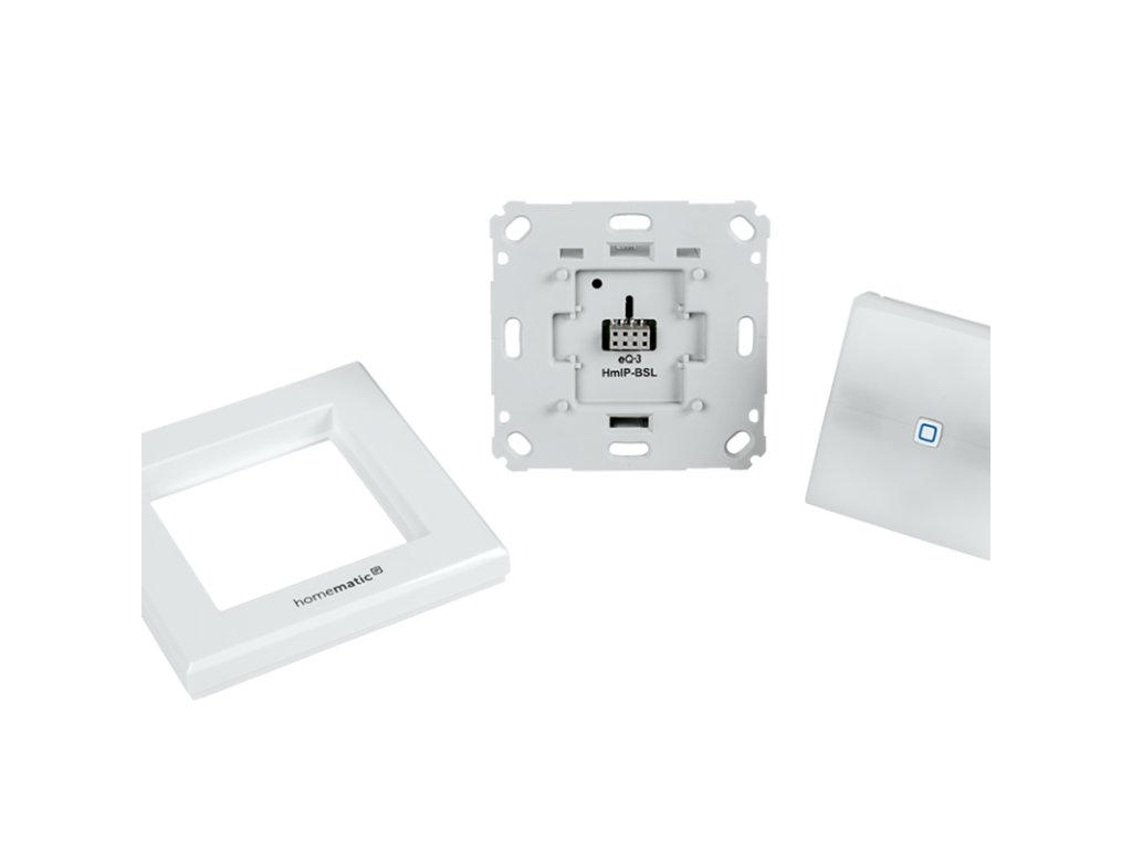 Programovateľný bezdrôtový Spínací akčný člen (HmIP-BSL) so spínaným výstupom pre záťaž na 230 V pre zapustenú montáž je súčasťou systému inteligentnej domácnosti Homematic IP.