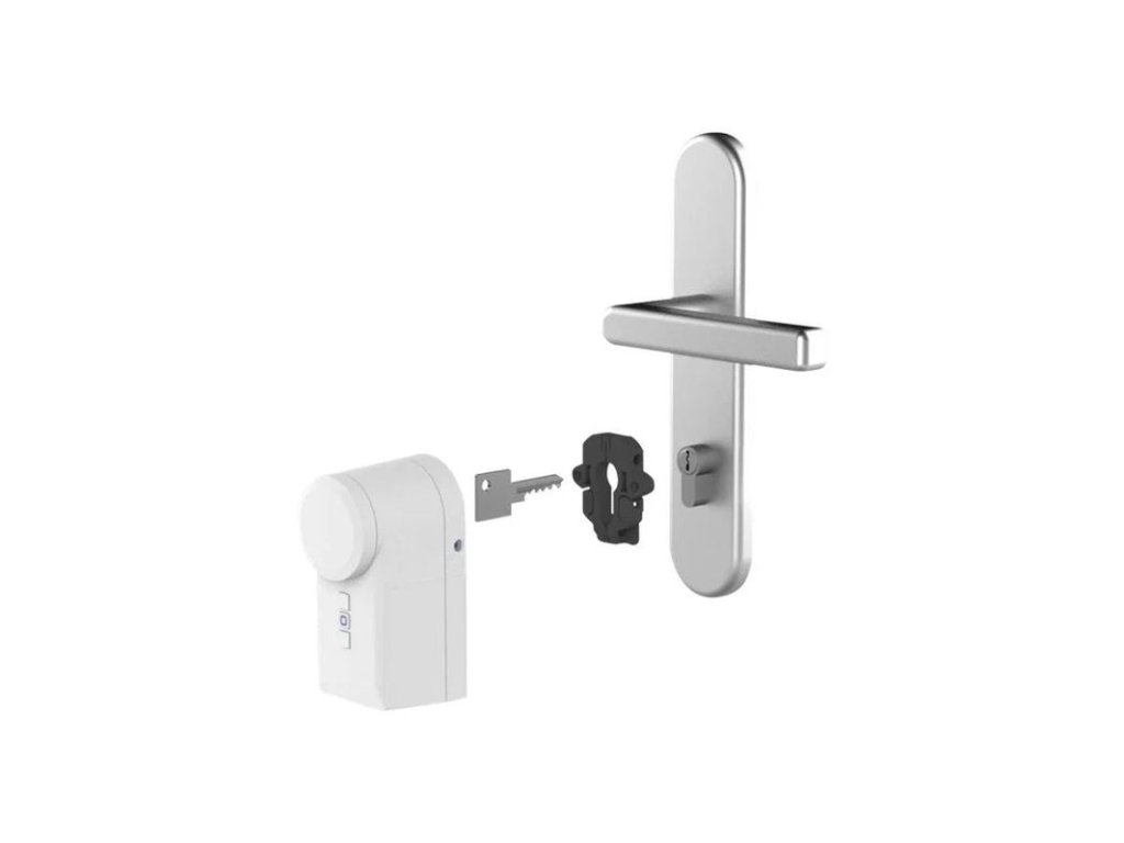 Bezdrôtová komunikácia a batériová prevádzka pohonu dverného zámku ponúka možnosť jeho jednoduchej inštalácie bez potreby kabeláže. Podstatným faktorom pre montáž je veľkosť cylindrickej vložky, ktorá musí na vnútornej strane dverí vyčnievať o 8-15 mm. Ak to tak nie je, odporúčame súčasne so zariadením zaobstaranie novej cylindrickej vložky s optimálnym predsadením 10 mm. Štandardná montáž sa vykonáva pomocou montážneho materiálu, ktorý je súčasťou balenia, bez akýchkoľvek mechanických zásahov do dverí. Konštrukcia montážnej konzoly pohonu ponúka ešte dodatočné otvory pre voliteľné uchytenie skrutkami k vnútornému kovaniu alebo krídlu dverí.