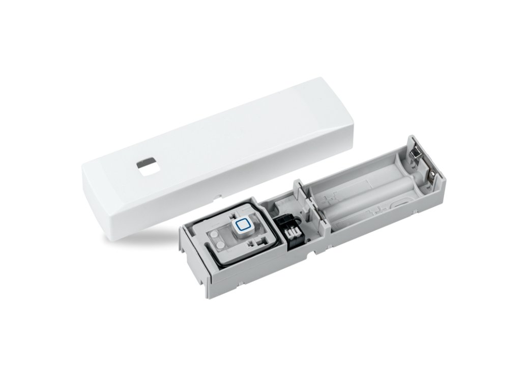 Bezdrôtový univerzálny kontaktný senzor určený na vnútorné použitie. Umožňuje integráciu káblových zariadení tretích strán do bezdrôtového systému Homematic IP. Napájanie 2× AAA batérie.