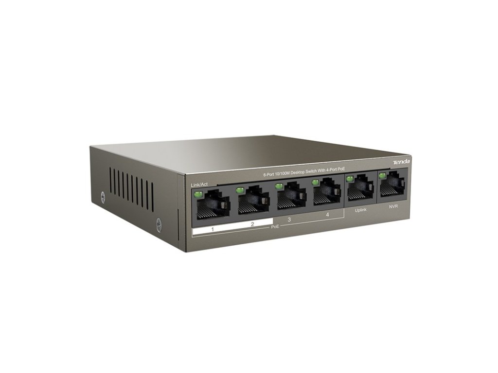 Tenda TEF1006P-4-63W prepína dáta pomocou 6 portov RJ45 s prenosovou rýchlosťou 10/100 Mb/s s automatickou detekciou rýchlosti. Dva porty slúžia ako Uplink a 4 PoE porty podporujú PoE 802.3af a 802.3at. Switch podporuje stabilné 8-jadrové PoE napájanie, ochranu proti prepätiu 6kV. Podpora prepájania uzlov v móde Store-and-Forward. Full-duplex kontrola toku 802.3x, half-duplex kontrola toku v režime Back-Pressure. Dva Uplink porty je možné využiť na pripojenie switchu do siete a druhý na pripojenie ďalšieho zariadenia bez PoE, napr. NVR a ďalších.