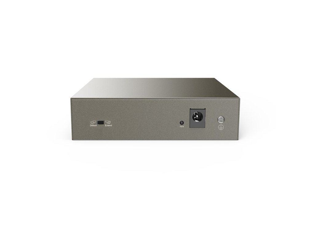 Tenda TEF1106P-4-63W je 6-portový Fast Ethernet PoE switch s napájaním PoE af/at. 4 porty 10/100 Mb/s sú napájané pomocou PoE 802.3af/PoE 802.3at (celkovo 4 porty 63 W) a porty 5 a 6 slúžia ako Uplink. Ochrana proti prepätiu 6 kV. QoS, režim Extend až na 250 m. Kovové prevedenie.