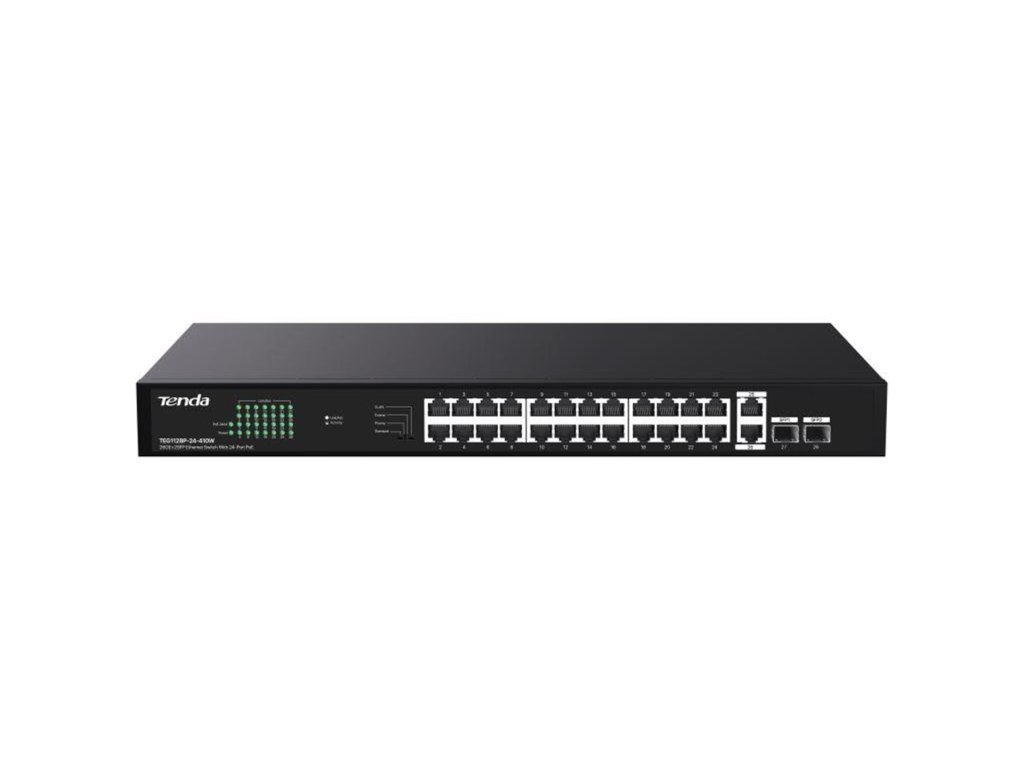 Tenda TEG1128P-24-410W PoE+ Gigabit switch 24x 1Gb/s PoE+ 802.3af/at + 2x SFP + 2x RJ45, 370W, Rack